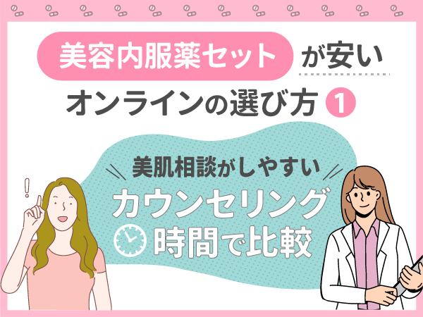 単純に安いだけで美容内服セットの比較はおすすめしないですが、美肌対策を目指す上で1回目の支払いハードルが低い方がオンライン診療をはじめやすいでしょう。