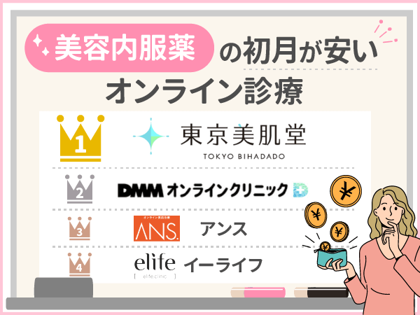 はじめて美容内服セットをオンライン診療で処方してもらうなら、初月に支払う料金が安い方がハードルが低いと感じる口コミは多いです。