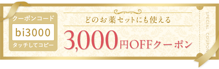さらに、初回限定で使用できる3,000円OFFクーポンは、東京美肌堂で処方されるあらゆる美容内服セットも対象になるので、他のオンライン診療と比較して安く購入できることがメリットになります。