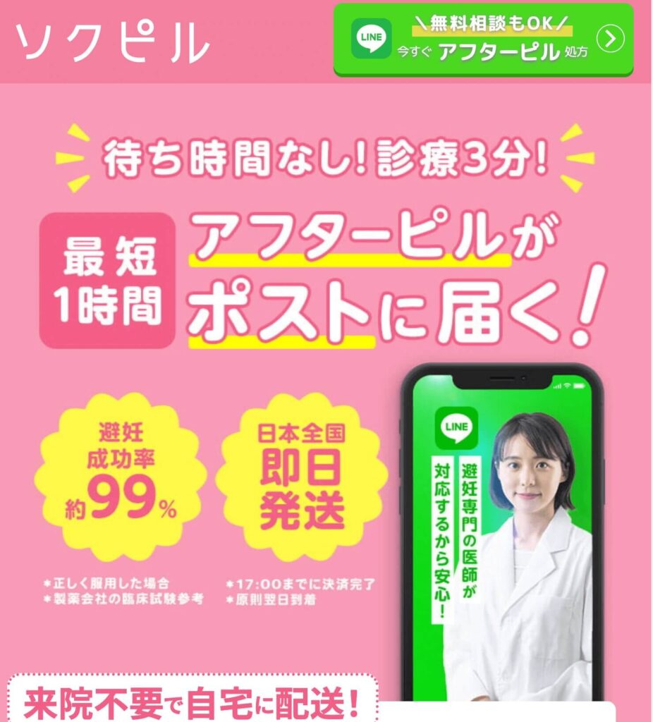 | オンライン診療 | スマホがあれば自宅で24時間アフターピルを処方してもらえる | 産婦人科や病院の休診時間や外出する時間がなくて今すぐ処方してもらいたい |